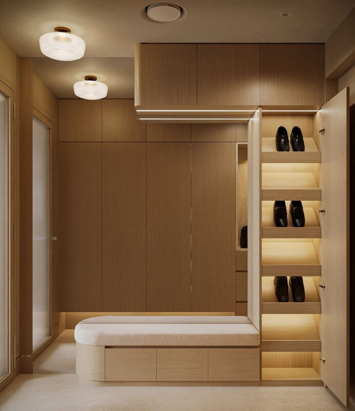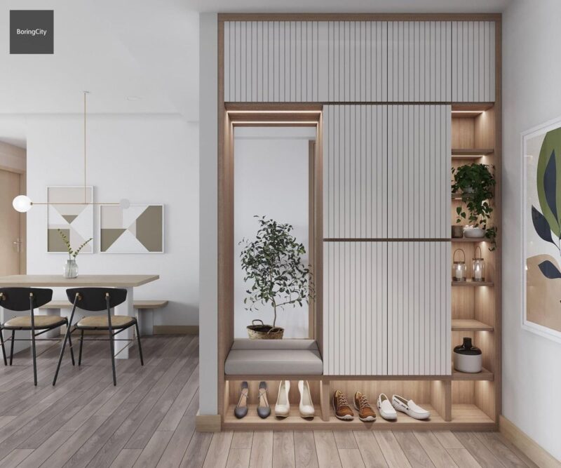- Tiết kiệm diện tích: Tủ giày giúp bạn tận dụng tối đa không gian nhỏ hẹp của căn hộ, đặc biệt là những căn hộ có diện tích hạn chế.