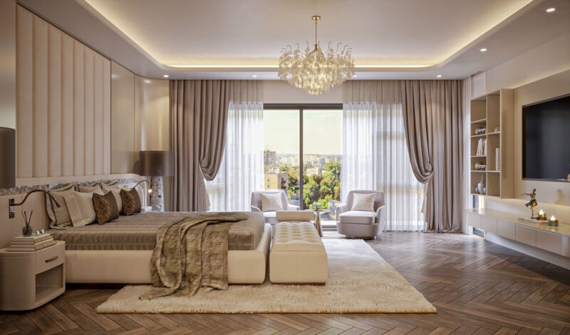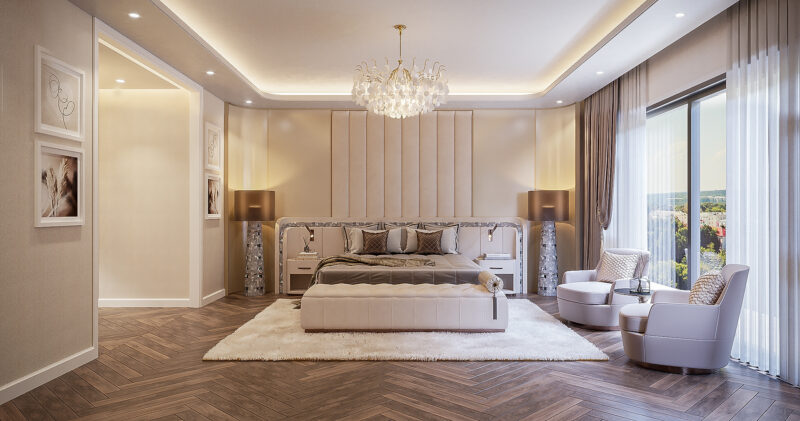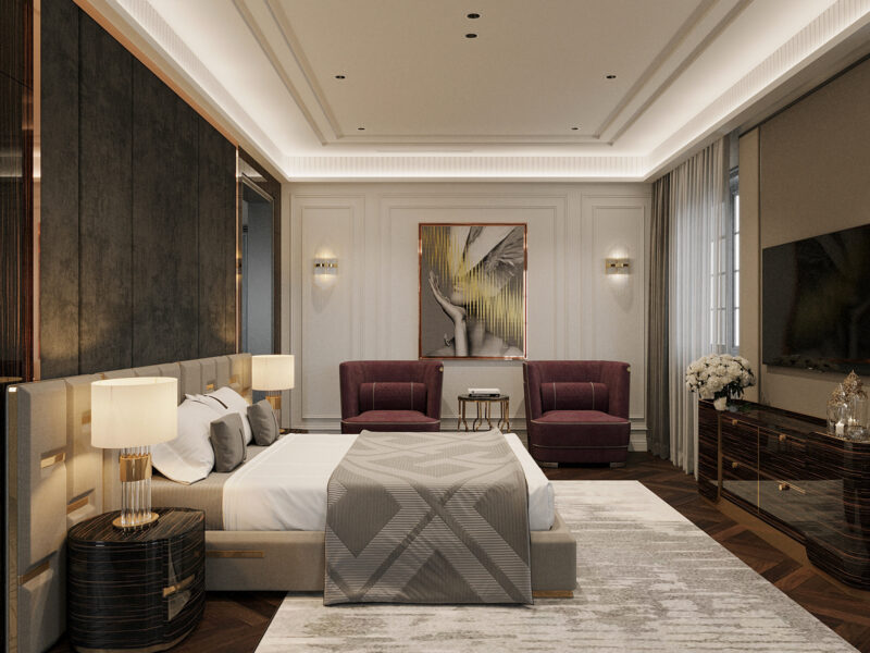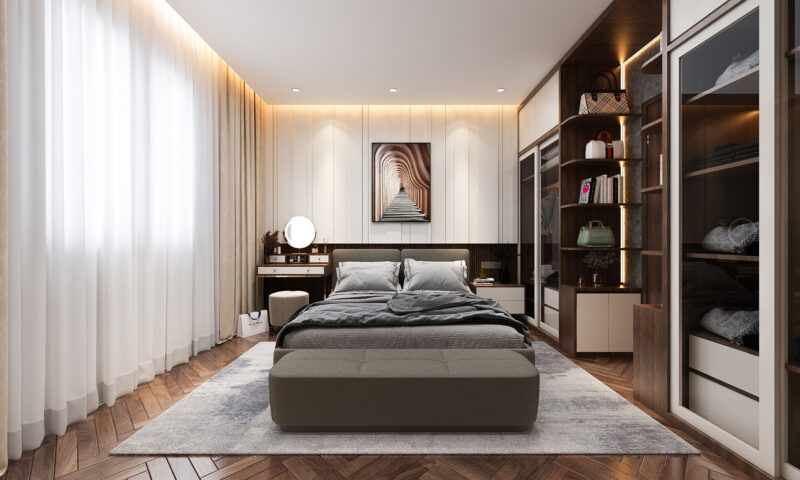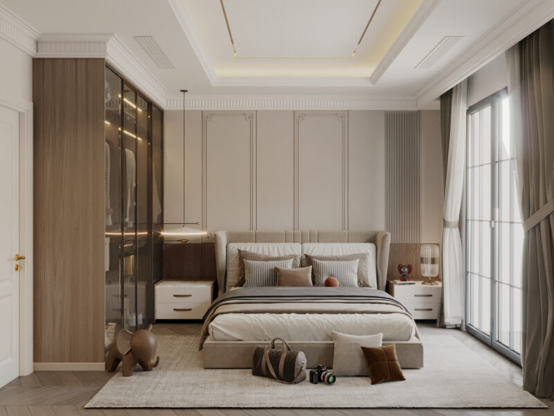 Phòng ngủ là không gian riêng tư nhưng lại là nơi thể hiện rõ nhất cá tính của chủ nhân. Thiết kế Luxury thường mang tính “độc bản” – nghĩa là được may đo riêng theo ý thích, không trùng lặp với bất kỳ ai, giúp gia chủ tự hào về không gian sống của mình.