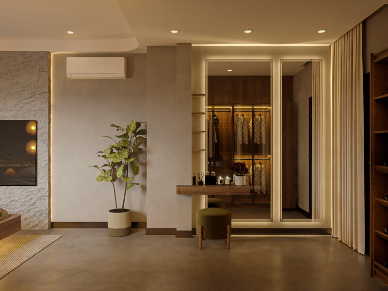 • Chú trọng ánh sáng vàng ấm: Tránh sử dụng ánh sáng trắng quá gắt như phòng khách. Hãy kết hợp ánh sáng tự nhiên ban ngày và đèn vàng dịu nhẹ vào ban đêm để tạo bầu không khí ấm cúng, hỗ trợ cơ thể sản sinh melatonin giúp ngủ ngon.
