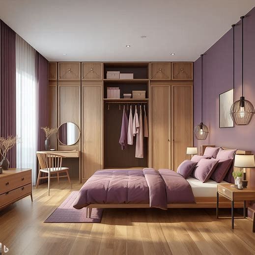 Phòng ngủ màu tím pastel mang đến vẻ đẹp lãng mạn, tinh tế và tạo cảm giác thư thái dễ chịu cho giấc ngủ sâu. Khi kết hợp cùng các tông trắng hoặc xám nhạt không gian trở nên hiện đại, sang trọng và đẳng cấp.Điểm nhấn từ chất liệu vải voan, ánh kim hoặc hương thơm từ hoa oải hương sẽ hoàn thiện nét thanh lịch cho căn phòng.