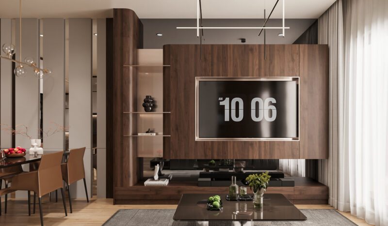 Gỗ là chất liệu không chỉ có độ bền tốt với thời gian mà còn giúp nội thất căn phòng của bạn thêm phần sang trọng hơn. Đây được xem là những chất liệu truyền thống nhưng tạo ra không gian cực kì sang trọng và ấm cúng. Thường sử dụng các gam màu gỗ nhẹ mang đến sự thanh lịch và sang trọng cho các món nội thất phòng khách.