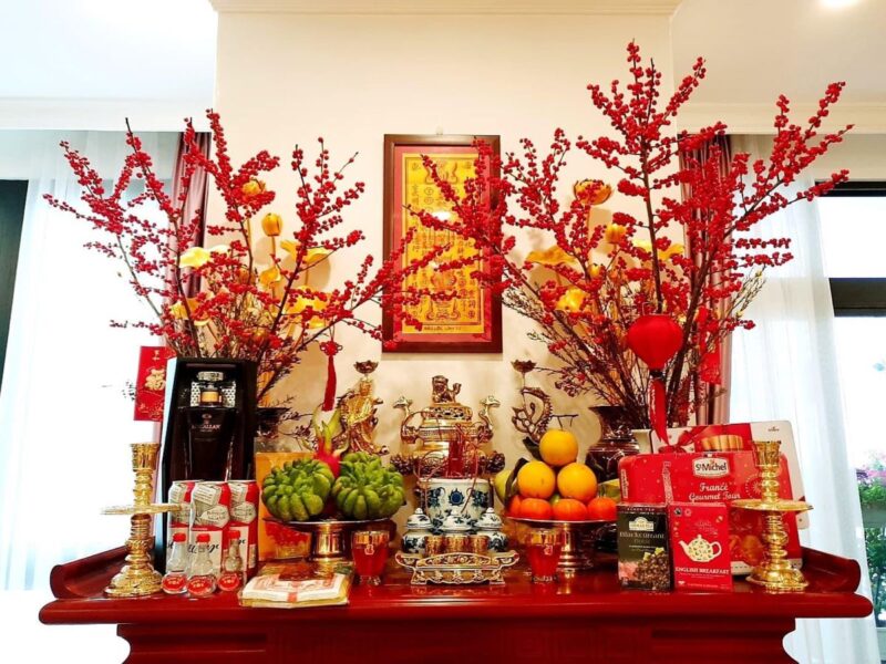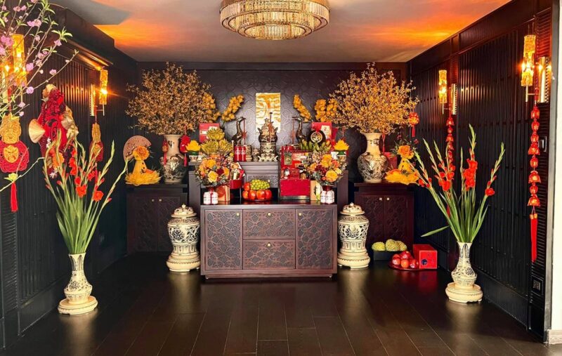 Đặc biệt trong những ngày đầu năm, việc bày trí thêm các vật phẩm mang ý nghĩa tốt lành như hoa mai, hoa đào, mâm ngũ quả, bánh chưng, bánh tét… không chỉ tăng tính thẩm mỹ mà còn tượng trưng cho sự đủ đầy, sung túc. Đây cũng là cách mở vận đầu năm, cầu mong công việc hanh thông, tiền bạc dồi dào.