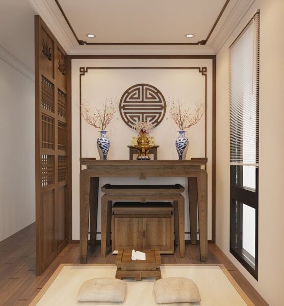 Gia chủ nên tách biệt khu vực tâm linh sang phòng khách hoặc phòng thờ riêng biệt. Điều này không chỉ thể hiện sự thành kính với gia tiên mà còn đảm bảo sự thư giãn, thoải mái tối đa cho không gian sinh hoạt cá nhân.