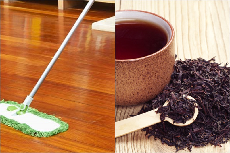 Nước trà có chứa chất tannin giúp làm sạch sâu và bám vào các thớ gỗ đẻ khôi phục màu sắc nguyên bản