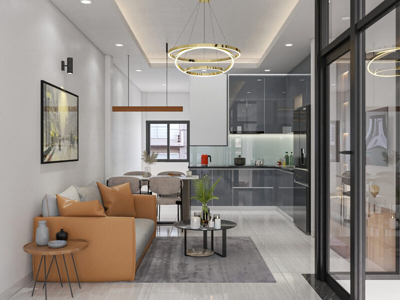 Không gian được tối ưu theo phong cách hiện đại – tinh gọn, mang lại cảm giác rộng rãi, thoáng sáng dù diện tích mặt bằng dài và hẹp. Từng khu vực được bố trí khéo léo, liền mạch nhưng vẫn đảm bảo sự riêng tư đầy đủ công năng