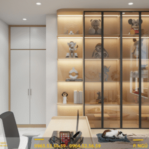 Combo nội thất phòng ngủ cho bé đầy đủ, tiện nghi có tủ trang trí đồ chơi – PNB001