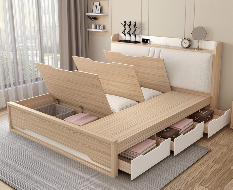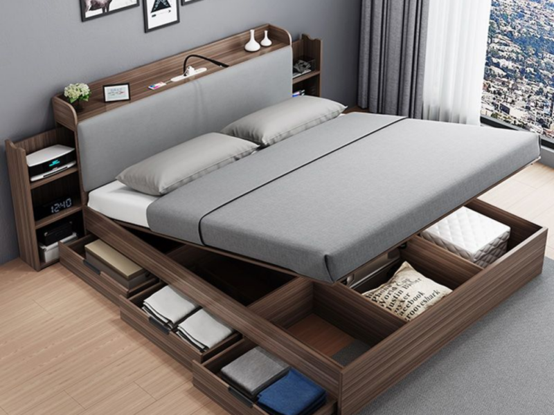 Kết hợp giường ngủ đa năng và hộc lưu trữ cho phòng ngủ 8m²
