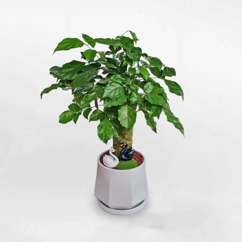 Cây hạnh phúc biểu tượng cho sự bình an, niềm vui và sự gắn kết giữa các thành viên trong gia đình. Trong phong thuỷ phòng khách, với những tán lá xanh mướt, dày dặn mọc sát nhau loại cây này tượng trưng cho sự sung túc và cuộc sống viên mãn, hoà thuận.