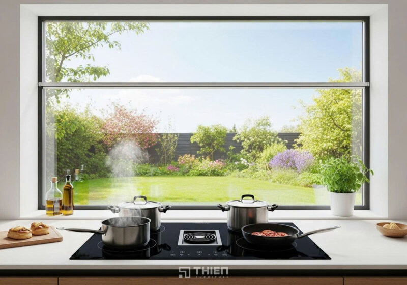 Trong phong thuỷ, bếp thuộc hành Hỏa, trong cây xanh và hoa thuộc hành Mộc – Thuỷ. Khi đặt quá gần hoặc đối diện bếp, các yếu tố này dễ xung khắc, làm mất cân bằng năng lượng trong không gian. Điều này có thể ảnh hưởng đến tài lộc, khiến tiền bạc hao hụt và gia đình dễ phát sinh mâu thuẫn. Do đó, nên đặt cây xanh cách xa khu vực nấu nướng.